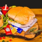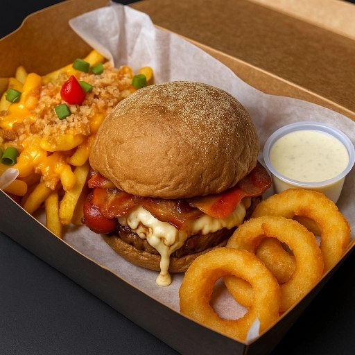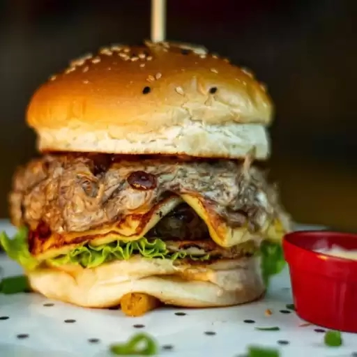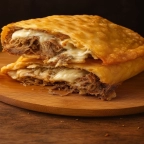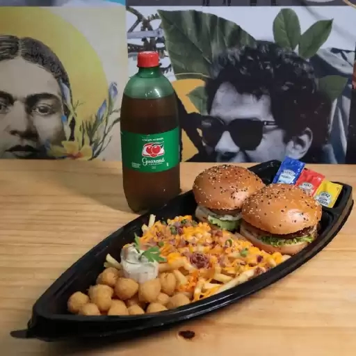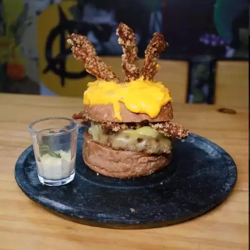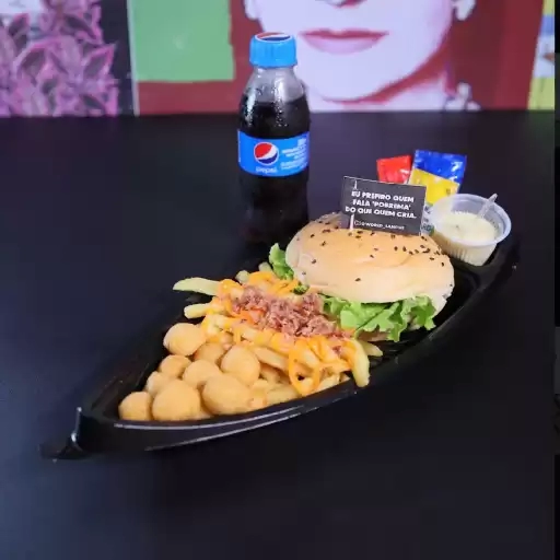 Pão selado na chapa, blend 130g, carne de sol desfiada, crispy macaxeira, queijo cheddar fatiado, queijo (mussarela e ... Ver completo