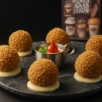 Pão empanado, salsicha, carne de sol na nata, queijo coalho massaricado.
