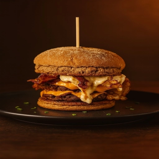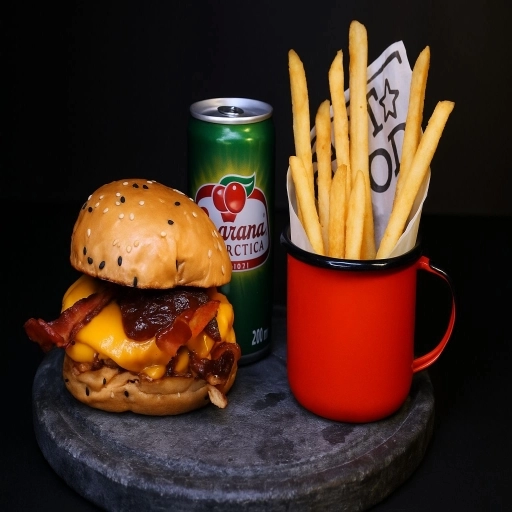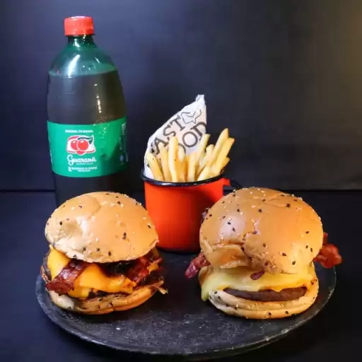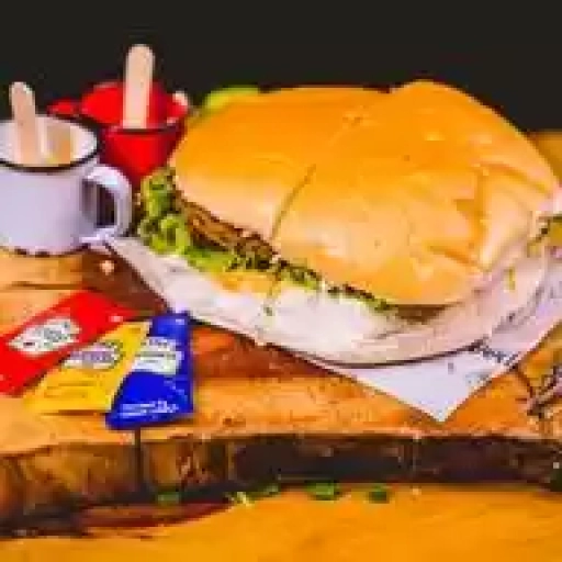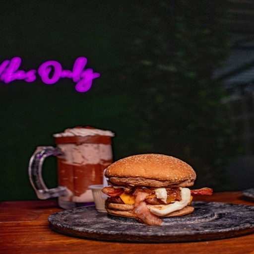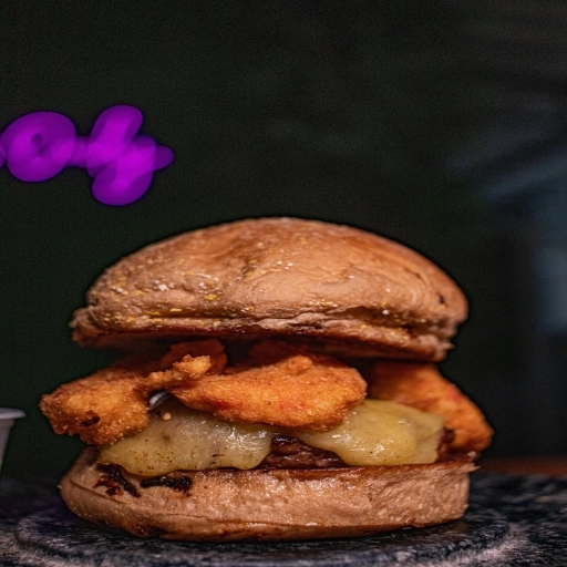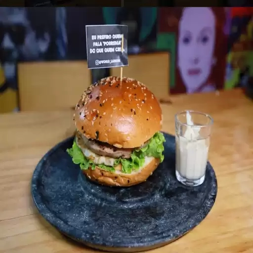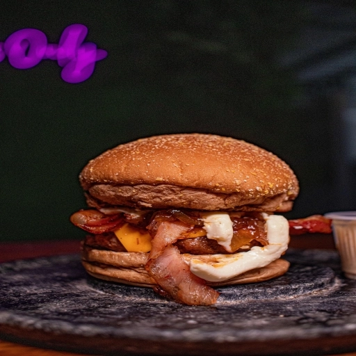 Pão selado na manteiga do sertão, blend 130g, queijo mussarela, delicioso e bacons empanados crocante, finalizado com ... Ver completo