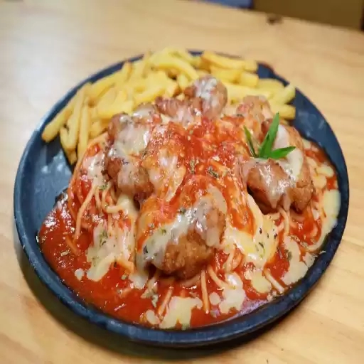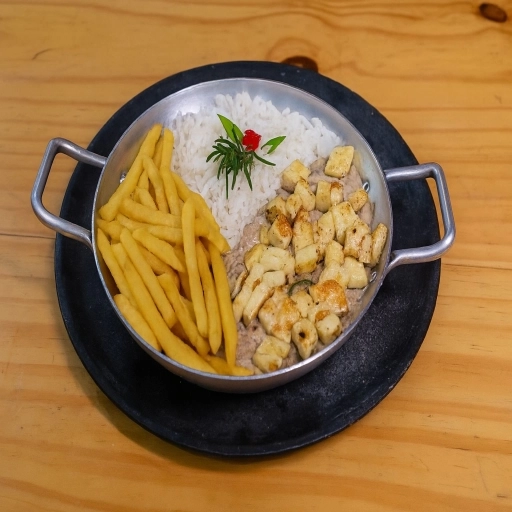 Ao molho barbecue e molho madeira, acompanha molho da casa